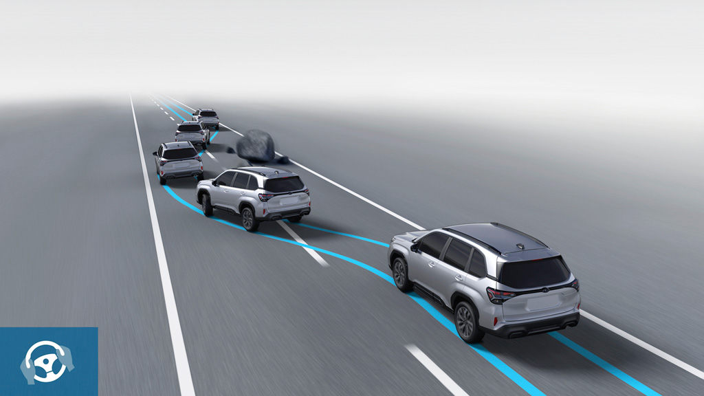 В дополнение к Системе автоматического экстренного торможения, рулевое управление также может быть задействовано при опасности столкновения с транспортным средством, пешеходом или велосипедистом. Система активируется в случае, если предотвращение столкновения с использованием только торможения может быть невозможно.